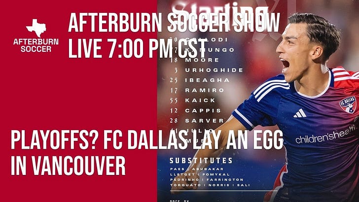Afterburn Soccer Show: No Playoffs for FC Dallas? Live at 7 PM CST