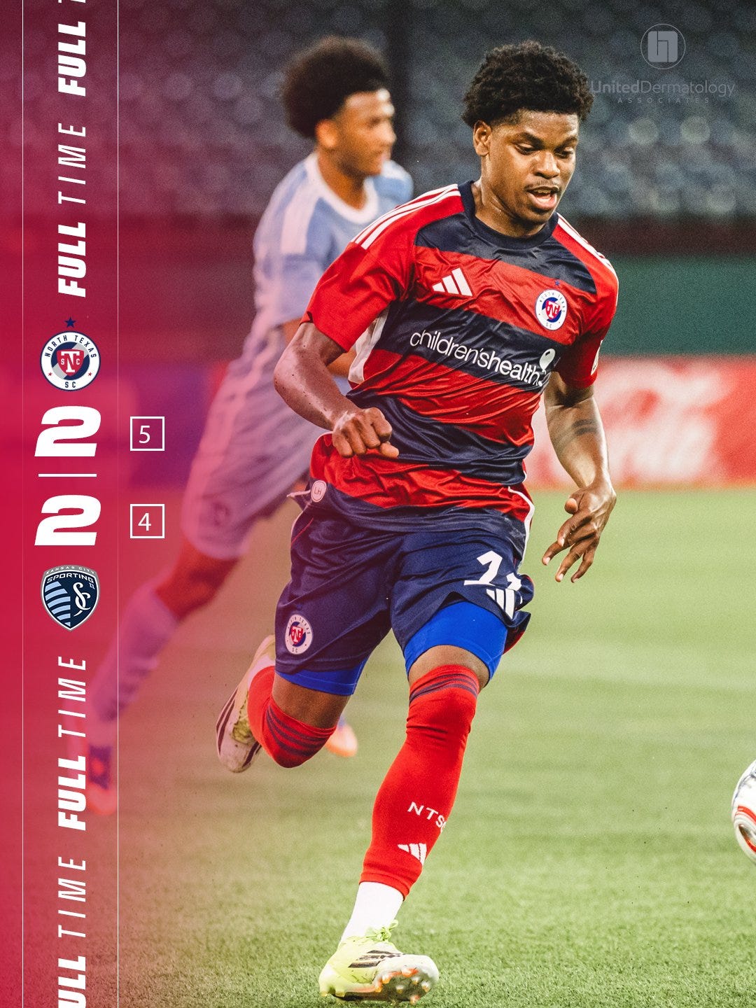 On a warm evening in Arlington, North Texas settled for a draw and extra point against SKC 2 after a late equalizer from the visitors spoiled an otherwise dominant performance. NTSC confidently won the penalty shootout to secure the consolation point after the final whistle. However, the team will be disappointed to waste a brace from Natty James, his 4th goal in consecutive matches.