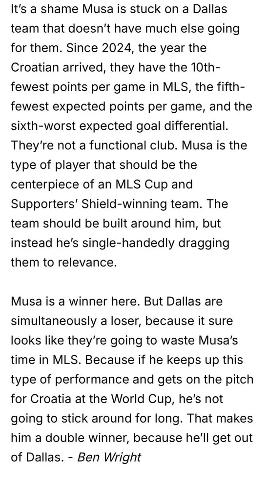 Keep in mind - San Diego FC fielded a heavily rotated side and got the job done. That gives us pause. Of course, soccer is cruel. Bounces can go your way, but at some point, FC Dallas needs to start creating their own bounces.